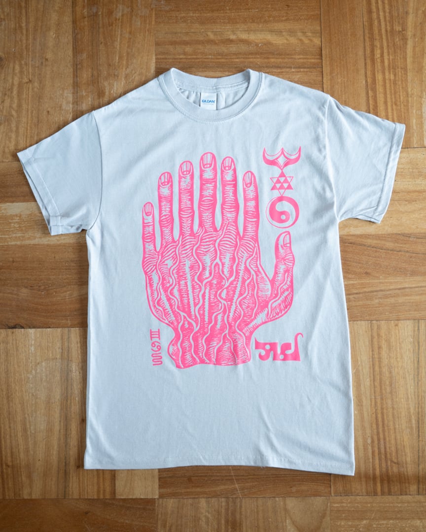 Doomsday Bonnetより、ヒグスの代表的デザインのハンドシャツ。魔除として、無意識の力を引き寄せたり跳ね返したり。